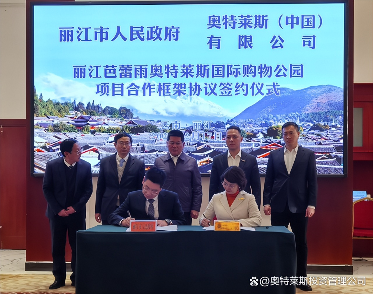 2月17日,奧特萊斯(中國(guó))有限公司總裁拜訪麗江市政府,與麗江市蘇永忠市長(zhǎng)在麗江座談,并見證《麗江芭蕾雨奧特萊斯國(guó)際購物公園項(xiàng)目合作框架協(xié)議》的簽署。奧特萊斯(中國(guó))助理總裁李曉薩、投資拓展中心總經(jīng)理周毅,以及麗江市政府、市發(fā)改委、市投資促進(jìn)局、市住房和建設(shè)局、市文旅局、玉龍雪山管委會(huì)、玉龍縣政府等主要領(lǐng)導(dǎo)參會(huì)。