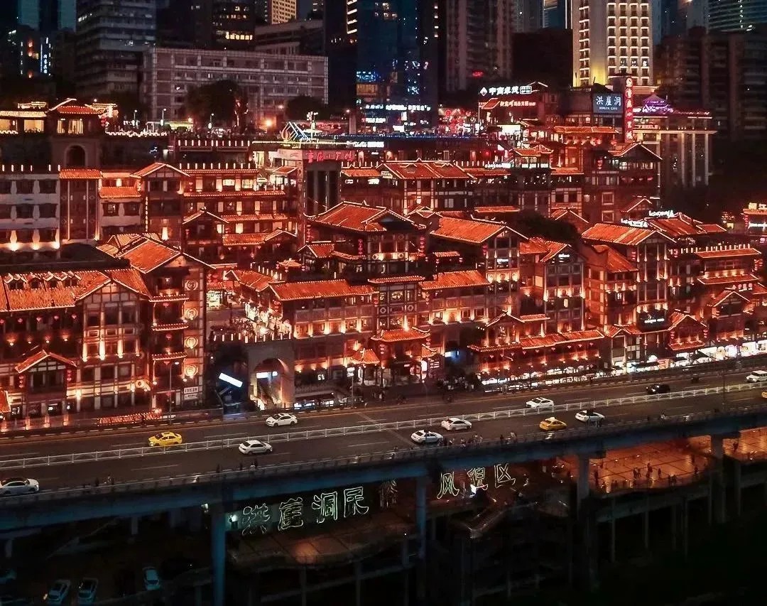 憑借巴渝傳統(tǒng)特色建筑的吊腳樓,光怪陸離的夜景,以及媲美《千與千尋》的二次元的視覺呈現(xiàn),在開街10年后進(jìn)入“黃金時代”,借助新媒體和IP話題發(fā)酵不斷攀升,發(fā)展成為如今的頂流的IP網(wǎng)紅地標(biāo)。