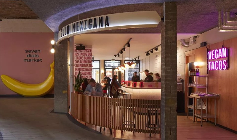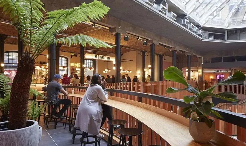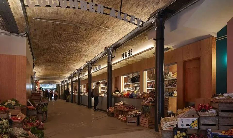 在曾經(jīng)用作儲存黃瓜和香蕉的Thomas Neal倉庫打造24h營業(yè)的Seven Dials美食市集。將整個市集劃分為倫敦專業(yè)生產(chǎn)商的室內(nèi)生產(chǎn)線的「黃瓜巷」和坐擁一系列著名街頭食品商鋪和餐廳的「香蕉倉庫」,給古老的倉庫賦予了新的生機(jī)。