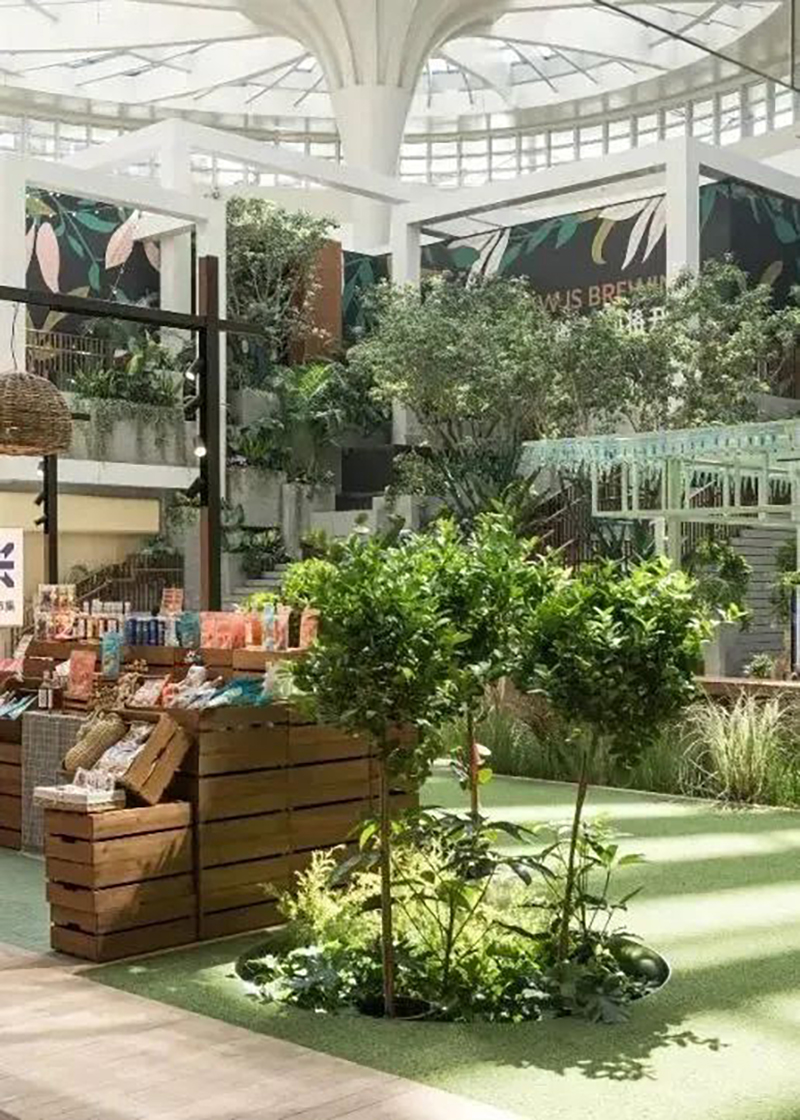 在購物中心內(nèi)打造市集,將顛覆傳統(tǒng)餐飲模式,從“吃”的需求引入社交屬性,喚醒人們對自然和食物本源的集體記憶。瑞虹新城太陽宮FOODIE SOCIAL 2.0南里食集坐擁25米挑高的5000㎡空間,目之所及皆有光與綠植,猶如一個有戶外感的美食空中村落。