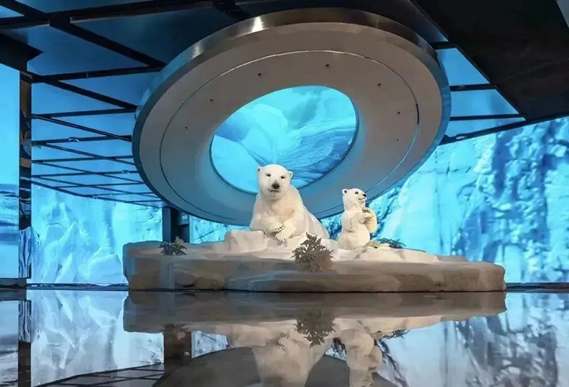 正如北京SKP-S內(nèi)的“未來(lái)農(nóng)場(chǎng)”以仿生羊?yàn)榱咙c(diǎn),成都“平行世界”里猩猩漫步太空引人遐想,武漢SKP亦在負(fù)一層SKP-S精心構(gòu)建了特色主題藝術(shù)空間《EARTH 2124》。該空間巧妙劃分為三大區(qū)域:北極熊區(qū)《無(wú)邊的浮冰》,寓意著冰川的消融與生命的掙扎;走廊區(qū)《新大陸架》,象征著未來(lái)世界的重構(gòu)與探索;企鵝區(qū)《覆羽》,則是對(duì)極地生物適應(yīng)環(huán)境、重獲新生的美好愿景。整個(gè)空間緊扣“以未來(lái)之眼審視全球變暖,攜手極地生靈共繪新篇章”的深刻主題。