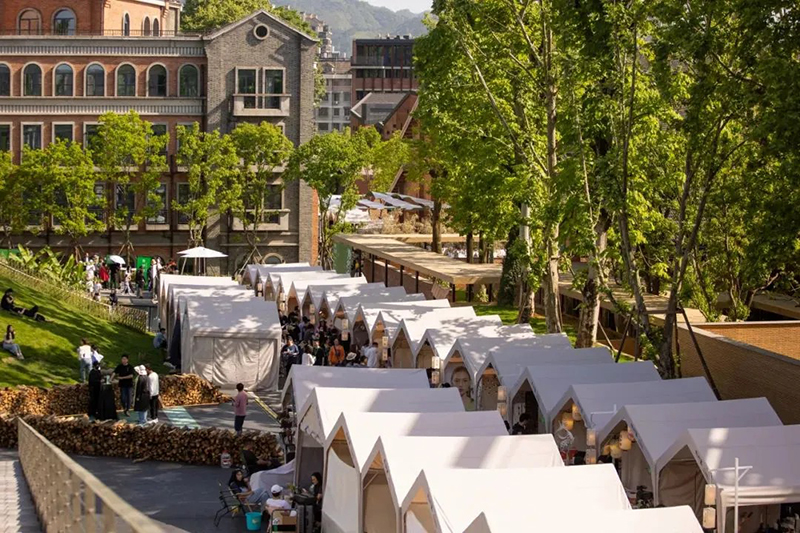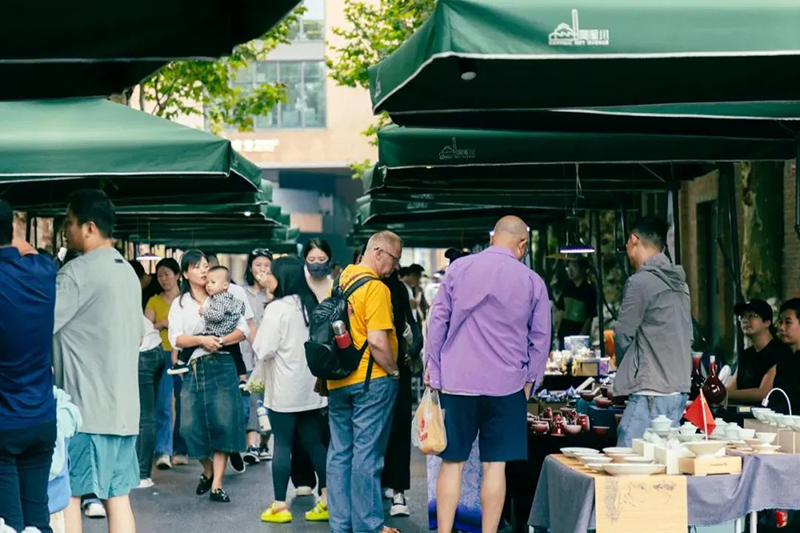 集市每周五、周六在街區(qū)廣場及主干道開市,占地9000平米,吸引數(shù)千名景漂創(chuàng)業(yè)青年參與,每月進行報名和重新篩選。