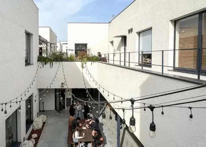 在這些“建筑盒子”內(nèi)部,各類店鋪如黑膠唱片店、復(fù)古書店、咖啡店、面包店以及餐廳酒吧等錯(cuò)落有致,共同圍繞“品質(zhì)生活”這一主題展開(kāi),營(yíng)造出一種令人心曠神怡的輕松氛圍。