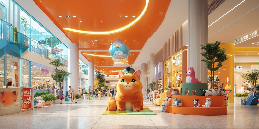 A場(chǎng)景:位于寵物友好購物中心一層,連接室內(nèi)外區(qū)域有家寵物零售店,店門口提供寵物推車,貨品陳列展臺(tái)尤其是寵物玩具類展臺(tái)略高于寵物推車,與寵物視線基本持平。店鋪店員自帶友好氣質(zhì),對(duì)來訪寵物的主動(dòng)親親貼貼毫無抵抗力。店內(nèi)到處可見主人們各自推著小車帶著貓貓狗狗,三三兩兩聚在一起聊著自家寶貝的名字、習(xí)慣與性格。直接進(jìn)入商場(chǎng)或從店鋪進(jìn)入商場(chǎng)都無需回避安保人員的“眼神拷問”,符合城市飼養(yǎng)規(guī)范的寵物均可自由進(jìn)場(chǎng)。