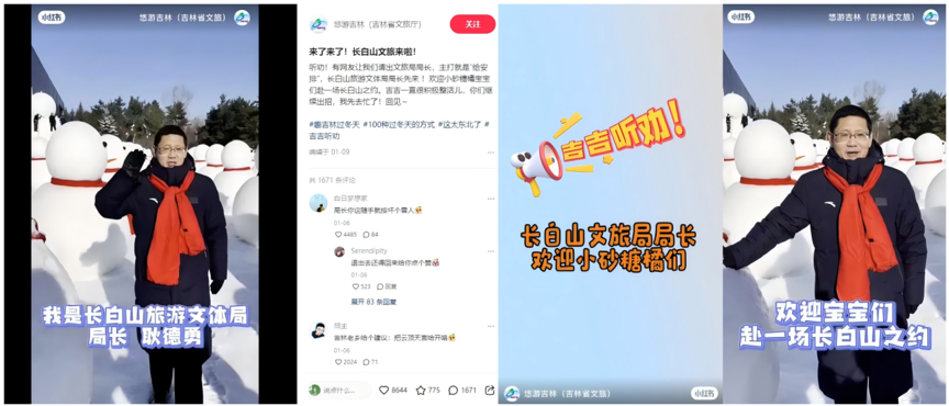 后有網(wǎng)友喊話“快讓長(zhǎng)白山跟一波熱度”,吉林文旅現(xiàn)場(chǎng)“搖人”,長(zhǎng)白山旅游文體局局長(zhǎng)隨即拍攝歡迎視頻,再次實(shí)戰(zhàn)“聽勸式營(yíng)銷”。