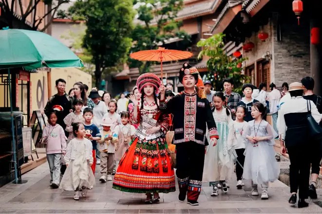 據(jù)悉,“阿詩(shī)夢(mèng)”產(chǎn)品線以云南特色民族民間文化為核心,旨在為外地游客提供沉浸式體驗(yàn)。在場(chǎng)景創(chuàng)新層面,滇池后海打造了具有云南民族特色的街區(qū),如白族三坊一照壁、傣族竹樓、苗族風(fēng)雨橋等,還定期舉行民族舞蹈、音樂(lè)表演。與此同時(shí),項(xiàng)目通過(guò)與當(dāng)?shù)厮囆g(shù)家、設(shè)計(jì)師的合作,推出了一系列具有云南特色的文創(chuàng)產(chǎn)品,如千言李白原創(chuàng)IP系列產(chǎn)品、非遺瓦貓等。在科技應(yīng)用上,項(xiàng)目也不斷探索和創(chuàng)新。通過(guò)引入會(huì)員系統(tǒng)、客流監(jiān)控系統(tǒng)、移動(dòng)支付、在線預(yù)訂等科技手段,提高了商業(yè)街區(qū)的運(yùn)營(yíng)效率和游客的消費(fèi)體驗(yàn)。