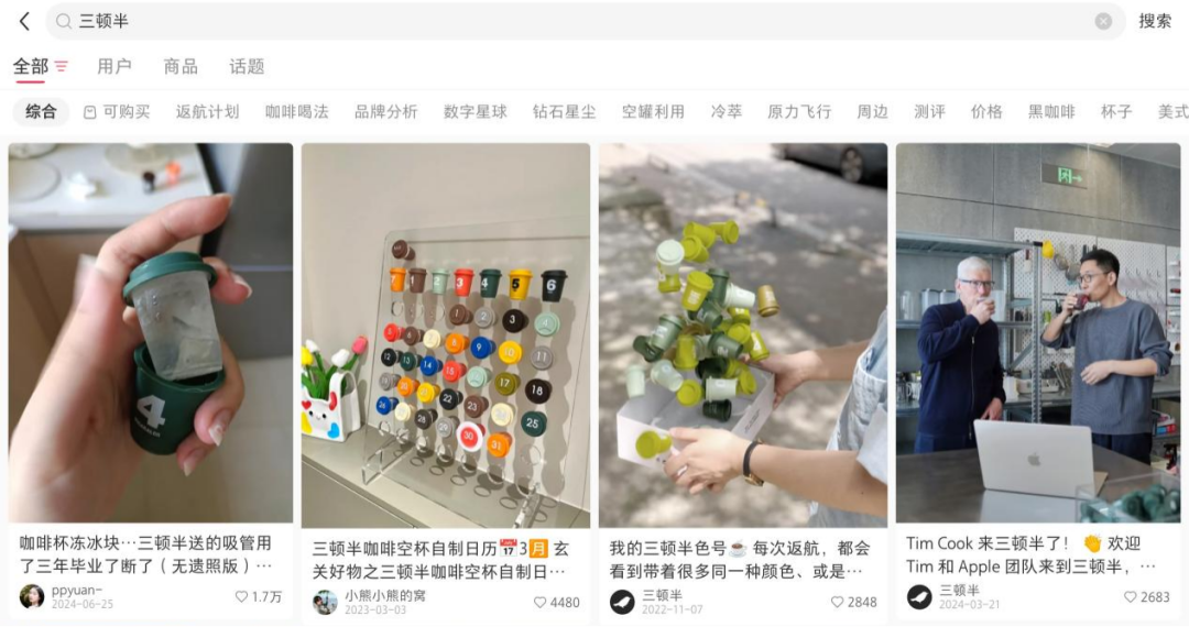 三頓半作為咖啡領(lǐng)域的創(chuàng)新先鋒,其憑借獨特的小罐咖啡形式,曾在小紅書上掀起了一股咖啡熱潮。眾多美食和飲料主播使用三頓半推出各種創(chuàng)意的咖啡沖泡教程和咖啡與美食搭配的內(nèi)容,如咖啡拿鐵、摩卡星冰樂等,為用戶展示了咖啡的無限可能性。消費者也積極響應(yīng),在小紅書上分享自己獨特的“三頓半空罐創(chuàng)意玩法”,將空罐制作成各種精美的手工飾品,展現(xiàn)了他們對生活的小巧思和對品牌的熱愛。此外,三頓半還精心策劃了豐富的營銷活動,例如“返航計劃”,該活動鼓勵用戶收集咖啡空罐,并前往指定地點兌換周邊產(chǎn)品或參與線下活動。這不僅有效提高了用戶的參與感,還極大地增強了品牌忠誠度。