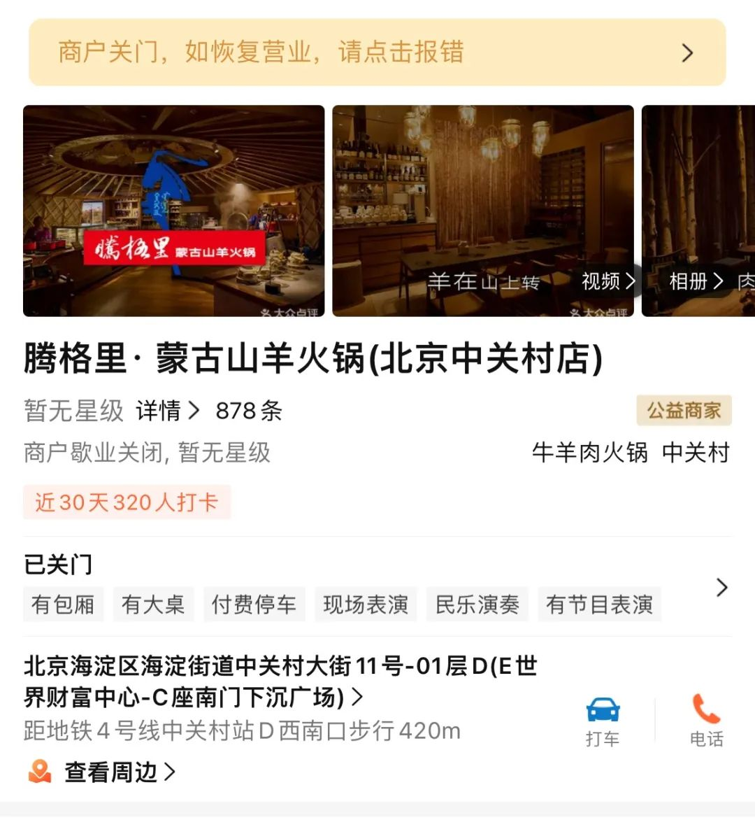 據(jù)大眾點評最新信息顯示,西貝餐飲集團在北京中關(guān)村高調(diào)推出的子品牌“騰格里蒙古山羊火鍋”全國首店已歇業(yè)關(guān)閉。這家曾以現(xiàn)熬羊骨湯、內(nèi)蒙古二狼山白絨山羊肉為主打賣點,開業(yè)首月即登頂區(qū)域火鍋熱門榜的餐廳,在運營不足半年黯然退場。